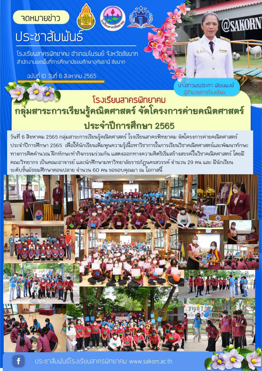 โรงเรียนสาครพิทยาคม กลุ่มสาระการเรียนรู้คณิตศาสตร์ จัดโครงการค่ายคณิตศาสตร์ ประจำปีการศึกษา 2565