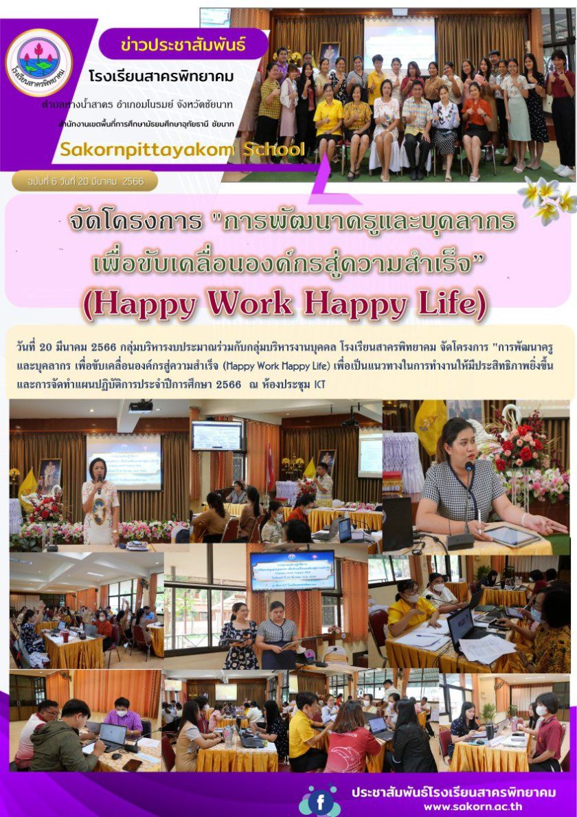 วันที่ 20 มีนาคม 2566 กลุ่มบริหารงบประมาณร่วมกับกลุ่มบริหารงานบุคคล โรงเรียนสาครพิทยาคม จัดโครงการ “การพัฒนาครูและบุคลากร เพื่อขับเคลื่อนองค์กรสู่ความสำเร็จ (Happy Work Happy Life) เพื่อเป็นแนวทางในการทำงานให้มีประสิทธิภาพยิ่งขึ้น และการจัดทำแผนปฏิบัติการประจำปีการศึกษา 2566  ณ ห้องประชุม ICT