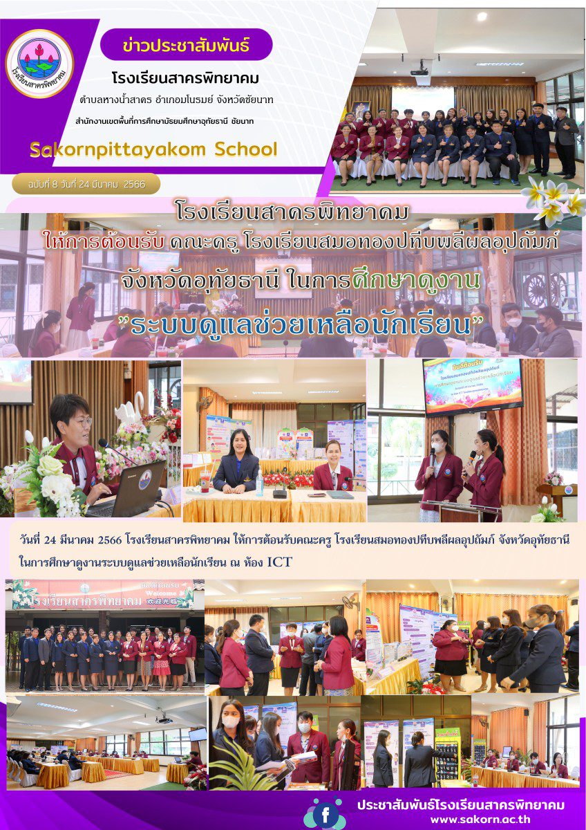 โรงเรียนสาครพิทยาคม ให้การต้อนรับคณะครู โรงเรียนสมอทองปทีบพลีผลอุปถัมภ์ จังหวัดอุทัยธานีในการศึกษาดูงานระบบดูแลช่วยเหลือนักเรียน