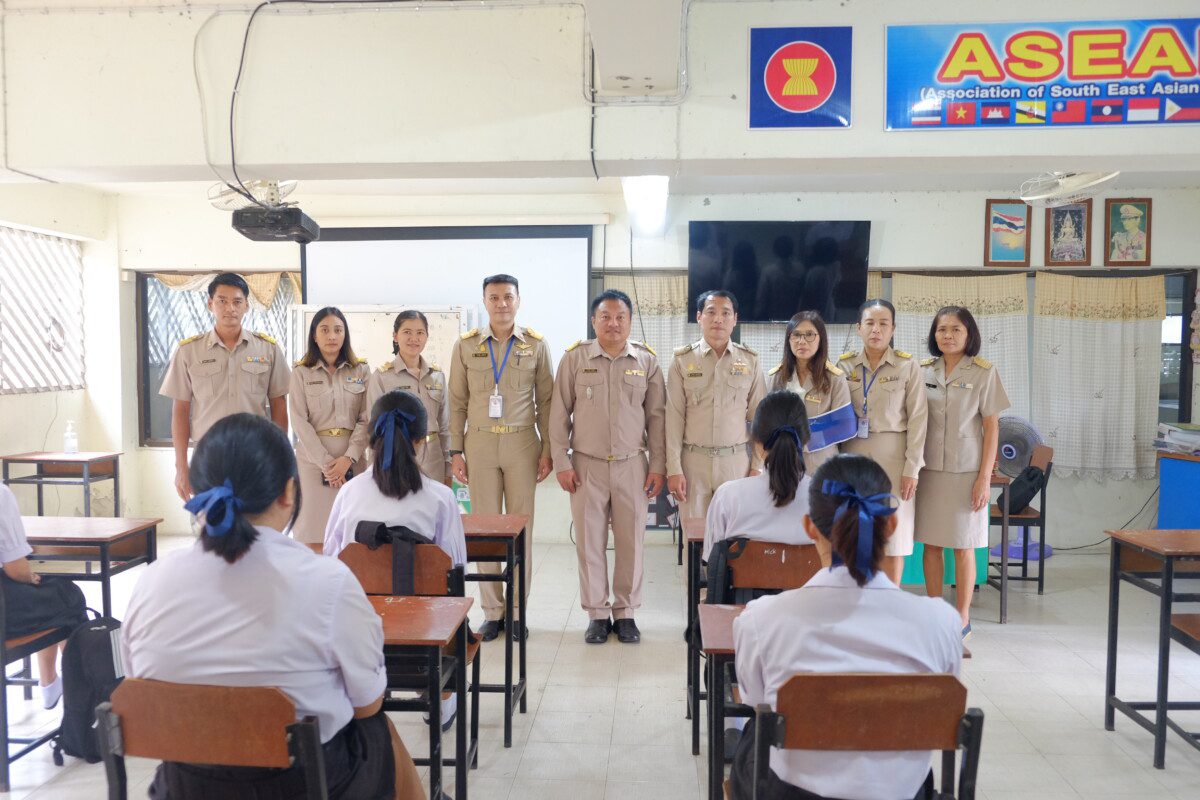วัน จันทร์ ที่ 6 พฤศจิกายน 2566 เวลา 09.00 น. ดร.กนก ยนต์ชัย ผู้อำนวยการสำนักงานเขตพื้นที่การศึกษามัธยมศึกษาอุทัยธานี ชัยนาท มอบหมายให้ นายวานนท์ นนทวงค์ รองผู้อำนวยการสำนักงานเขตพื้นที่การศึกษามัธยมศึกษาอุทัยธานี ชัยนาท เป็นประธาน พร้อมด้วย คณะศึกษานิเทศก์ในสังกัด ร่วมลงพื้นที่ตรวจเยี่ยม นิเทศ ติดตามในการเปิดภาคเรียนที่ 2 ปีการศึกษา 2566 ตามที่ สำนักงานคณะกรรมการการศึกษาขั้นพื้นฐานกำหนดให้สถานศึกษา เปิดภาคเรียนที่ 2 ปีการศึกษา 2566 ซึ่งได้กำหนดมาตรการและแนวทางการจัดการเรียนการสอนของโรงเรียนในสังกัด เพื่อให้สถานศึกษาในสังกัดสำนักงานเขตพื้นที่การศึกษามัธยมศึกษาอุทัยธานี ชัยนาท มีความพร้อม ดำเนินการตามมาตรการและแนวทางการจัดการเรียนการสอน เป็นไปด้วยความเรียบร้อย มีประสิทธิภาพ และเพื่อให้บรรลุวัตถุประสงค์ โดยได้ลงพื้นที่ตรวจเยี่ยมโรงเรียนหนองเต่าวิทยา ซึ่งได้รับการต้อนรับจากทางโรงเรียนดังกล่าวอย่างดียิ่ง